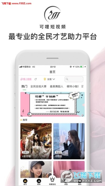 可哩短视频app是一款手机短视频软件,这款软件上也有很多多样的短视频资源,不过在可哩短视频app上用户还能参加各种各样的才艺大比拼哦,报名拍摄视频参赛即可,同时还能拉上好友给你助力,赢了还有奖品哦,快来下载吧!