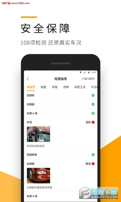 2、以二手商用车领先的检测体系,108项专业检测标准,为您提供专业的二手商用车技术检测鉴定报告,让您买的放心,不看实车也可出价竞拍。
