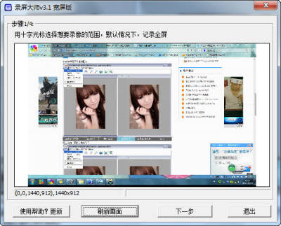 步骤1、打开录屏大师之后,选择要录制的区域(默认录制全屏)然后点击下一步 按钮