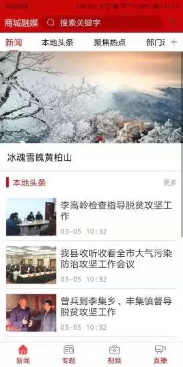 商城融媒是一个集电视直播、新闻资讯、社交娱乐、生活服务为一体的手机应用客户端,为政府提供移动新媒体舆论宣传阵地,是本地居民的贴身媒体,是商城县对外宣传的新窗口、新平台。