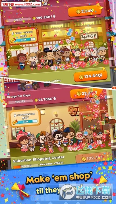 开启一系列时尚商店并对其进行升级,以便让顾客可以浑金如土!不要忘记雇佣大量勤劳的员工,并培训他们成为你的职业赚钱机器!
