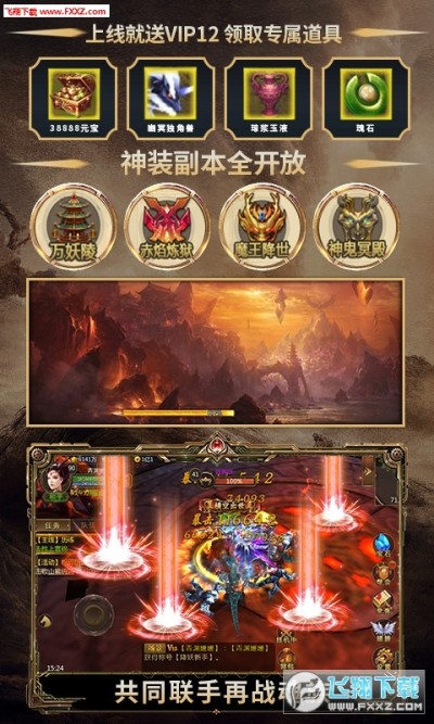 2、上线送永久VIP12,绑定元宝*38888,金币*288万