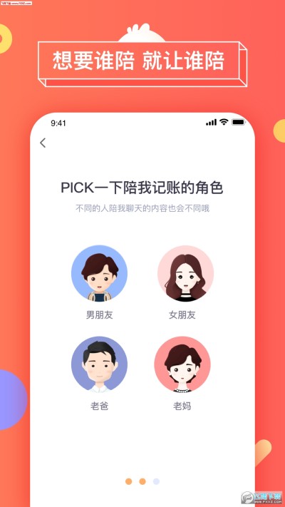 1、角色设置:自由切换陪你记账的人,想要谁陪就让谁陪;