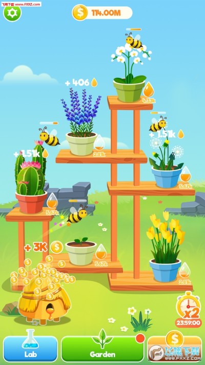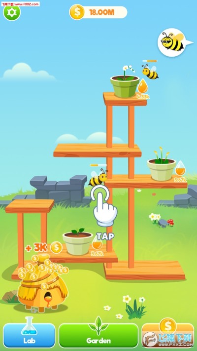 1、欢迎来到蜜蜂花园。这是一个无聊的点击游戏。你可以在花园里种花,买蜜蜂。