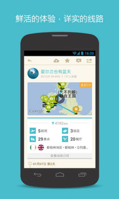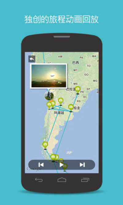 3.自动生成可动画回放的精彩游记,并能同步新浪微博。