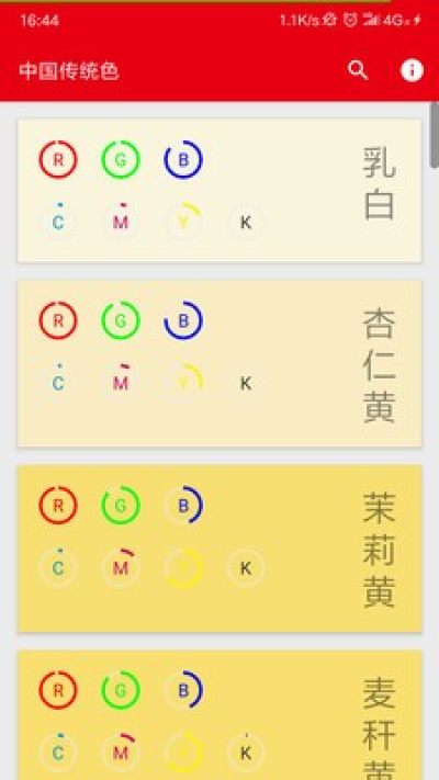 中国传统颜色是款相当不错的手机颜色软件,下载之后我们就能快速选择自己喜欢的颜色进行研究,软件工鞥还是相当方便的适合我们免费进行选择。想要让自己的手机更加方便好用的朋友速速下载吧!