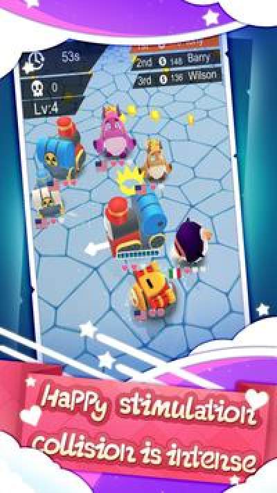《Crazy Bumper》是一款多人在线竞技游戏,游戏中玩家需要去控制自己的车辆来开始开始一场大乱斗,游戏中你需要去控制自己的机器来不断的吞噬游戏中的敌人,完成游戏中任务,升级你的车辆,强化你的实力,完成游戏中的冒险吧。在这里想办法去吞噬更多的其他同类,让自己变得更加的强大,但是会有一些天灾,从天而降,将你的小火车砸扁,可以从后方偷袭敌人,偷袭成功之后可以获取敌人的金币,金币就会越来越多。