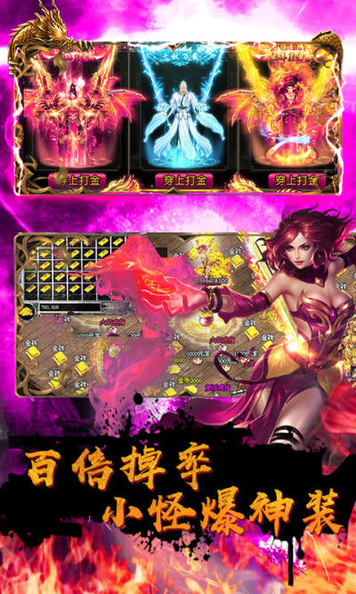 6、经典传奇角色,战士,法师,道士,大招再现,和兄弟共赴沙场,轻松打怪。