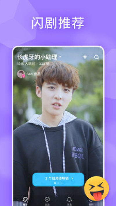闪剧不仅能看还可以互动,每一部剧给你和主角设定一个角色,每一次互动都会获得不同的好感度、亲密度、角色属性的及时反馈,分值将影响故事结局。