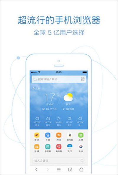 这是UC浏览器的iPhone版本,上网速度快而稳定,同时支持web、wap页面浏览,是一个功能非常强大的手机浏览器,也是苹果手机必备的应用软件之一。目前这款手机浏览器拥有很高的人气,相比其他浏览器,它每月可以为用户节省约60%上网流量,其特有的离线看小说、视频,广告拦截、极速模式等创新功能也深受用户好评,是目前最好用的手机浏览器!