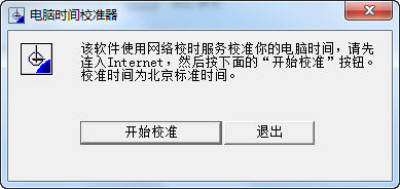 该软件使用网络校准的你电脑时间,请先连接网络,然后在按下“开始校准”按钮,校准时间为背景标准时间。