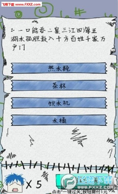 极具挑战性的神题问答游戏,上手简单,只要把正确的答案找出来就可以过关。作为一款奇葩答题游戏,课堂大冒险以其无厘头的风格和毫无节操的解题思路,树立了风趣的风格,同时以志在改变四方少年固化思想为目标,大力弘扬坑爹精神。