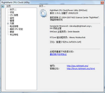 下载后解压缩就可以直接双击“rmclock.exe”使用。先介绍一下各个界面。