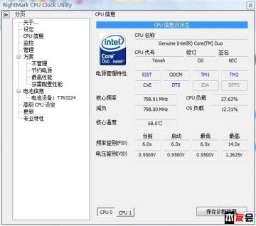 其实intel和amd对于现在的笔记本用cpu(甚至台式机用CPU)都作了相关的设置,使cpu在相对较少需要的时候以较低电压工作在较低频率上以达到降功耗的目的。比如,我们的T2350就会在比较闲的时候工作来0.95v 800MHz(6X倍频)。