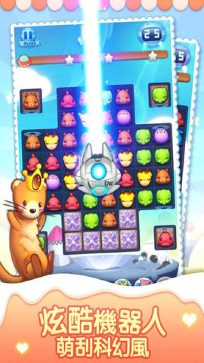 《开心宠物萌萌消》游戏是一款很好玩的消除休闲游戏,游戏拥有海量关卡,超级多可爱Q萌的角色,关卡难度在不断的增加,并且每一关的关卡任务要求都不同,你可以完成任务即可进入下一关,游戏中有很多个图案,你只需要将三到五个相同的图案按照不同的消除方式消除即可。