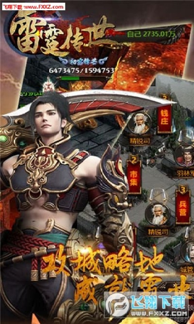 《雷霆传世疯狂版》震撼来袭!游戏拥有战宠召唤、激斗BOSS爆神装、转生神翼、万人攻城等开放式玩法,迅速激起你的青春回忆!戏内设独特BOSS系统,和兄弟一起打BOSS,体验超高爆率、疯狂收割,让你不再为装备和资源发愁!让你的实力和造型都得到万人的膜拜吧!还等什么?快来和兄弟一起,重铸霸业!