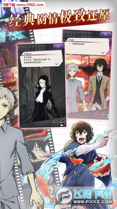游戏匠心打造,原版声优助阵,对动漫剧情进行原味再现。展现千变万化文豪异能战斗的同时,将在动漫故事的基础上,加入全新的原创剧情,为核心粉丝带来共鸣与爱。