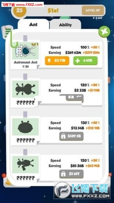 《蚂蚁空闲官方版》是一款卡通风格放置玩法的休闲益智类手游,游戏中顽疾可以通过点击食物来不断的赚取金钱,使用金钱来购买蚂蚁,让蚂蚁不断的吞食掉食物,不断提升蚂蚁的属性,解锁更多的不同的蚂蚁,喜欢的小伙伴可以下载试试!