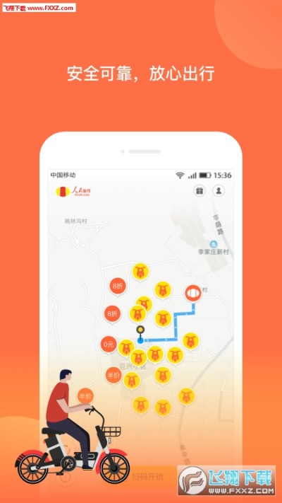 人民出行app是一款智能交通出行软件,这款软件主要是针对电动自行车打造的出行软件,在人民出行app上各位用户可以在线找到附近的电动自行车,而且还能随时还车等等,低碳环保,快来下载吧!