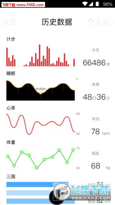 实时记录三围数据信息,包括胸围、腰围、臀围的数据信息;