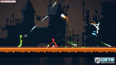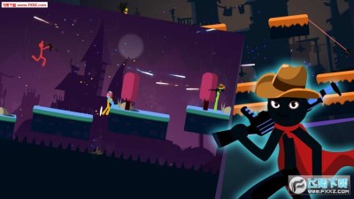 2、4名火柴人同时战斗,相互射击,武器会随掉落,包含了狙击枪、喷火器、冲锋枪等多种武器;