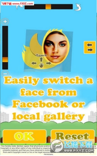 1、简洁趣味的游戏画风,轻松活泼的背景音乐,将你的好友照片完美的融合在鸟脸上;