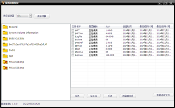 2 选择您的误删除文件所在的驱动器;比如:我们误删除文件是E:\test下的所有图像和视频文件,那么,我们选择E盘,然后点击开始扫描。