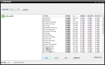 4 选择您要恢复的文件,不用太在意”是否删除”的文字,因为windows系统下就是这么记录的,爱虎只是如实的显示。我们全部恢复,所以选择全选;然后,选择恢复选中文件,如下: