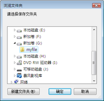 5 选择保存被误删除文件的目录,注意,为了防止被删除文件被覆盖,影响恢复效果,因此,我们的保存目录最好不要和被删除文件在同一个驱动器。因此,我们选择G:\myfile,点击确定。