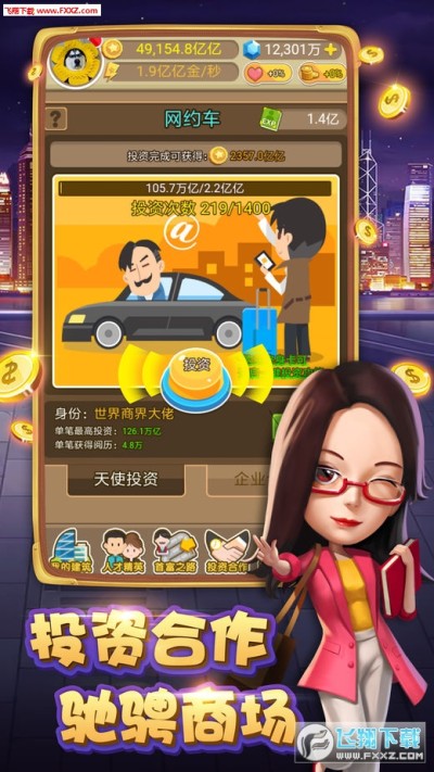 从一个小小的贴膜摊位慢慢地不断发展,最终成为富可敌国的商业大富豪,清晰的游戏画面,丰富多彩的游戏剧情,游戏有着精彩有趣的剧情故事,慢慢发展公司,招募更多的商业人才,帮助你打理公司,然后扩大公司的规模,享受金币和美女丰富体验,还有各种商业的大型活动等你参与。
