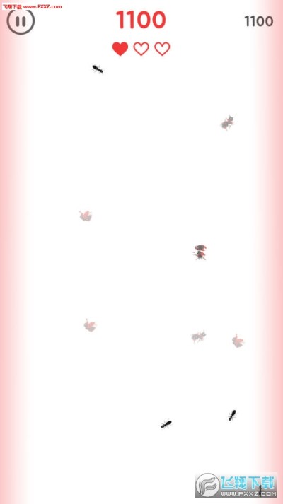 3、纯白色屏幕上突然出现了黑黑的蚂蚁!快动动手指,捏掉看着就烦的蚂蚁吧!