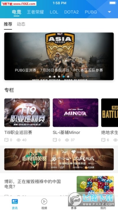 第一手游戏资讯,让你实时掌握赛事讯息,分析选手数据,为你喜爱的电竞战队打call。
