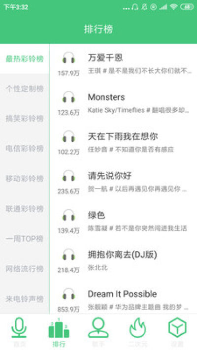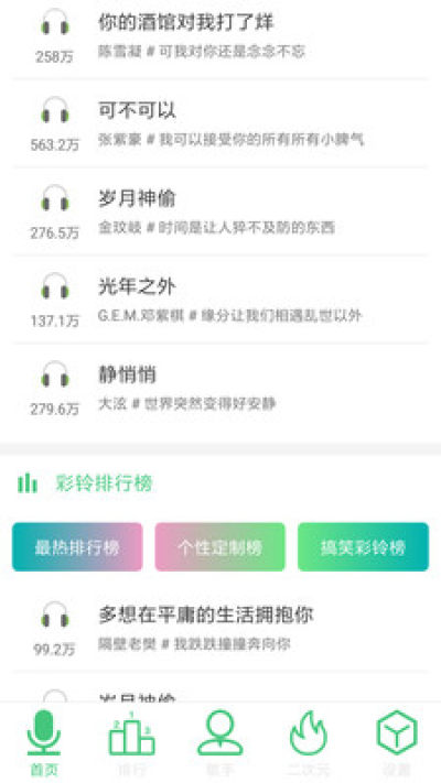 还有这些热门铃声不容错过,《出山》、《你的酒馆对我打了烊》、《绿色》、《浪子回头》、《心如止水》等抖音热歌都在酷音铃声等你倾听~