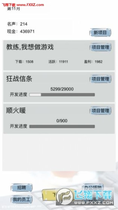 教练我想做游戏是一款简约风格的模拟类游戏,在这里,玩家将作为游戏公司的老板,体验一款游戏上市前后遇到的各种问题,你需要很好的去处理,让你的公司和游戏得到好的发展,喜欢就下载教练我想做游戏体验吧。