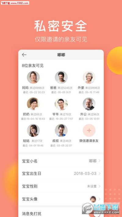 仅限邀请的亲友可见,严格保障宝宝的隐私安全。