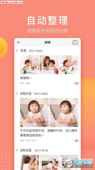 使用小视频、照片、文字,记录宝宝的成长点滴。