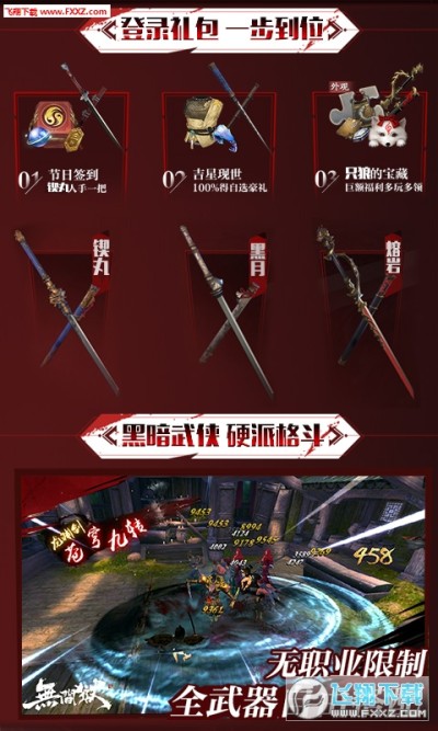 ★开服登陆送元宝和稀有强化材料,次日即送紫色武器,连续登陆再送绝世橙武,不充钱也能玩得很爽。
