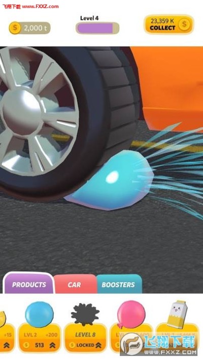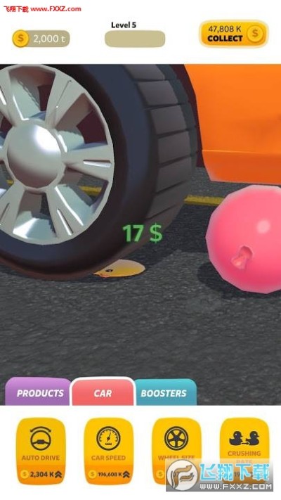 游戏中玩家可以控制汽车去压爆那些非常柔软的东西,压的越碎得到的金币奖励就越高,后期就可以更多好玩的道具!