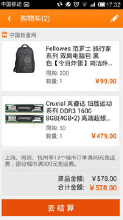 【新增】在线支付:通过手机客户端下单后直接可使用支付宝在线支付,支持大部分银行;