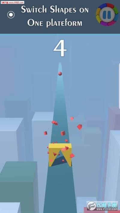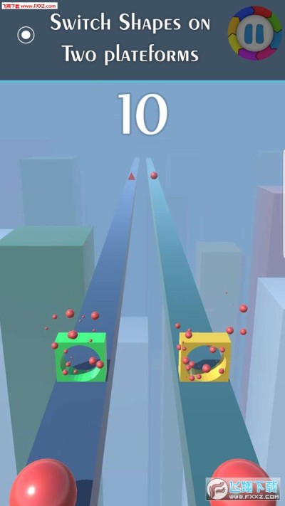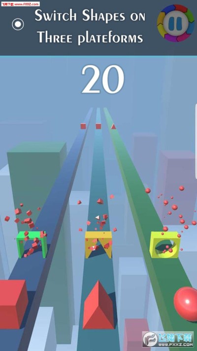 在这个开关形状的游戏中,你有三种形状,第一种是球体、三角形和矩形,还有三种是这些形状的障碍物。当你在彩色道路上行走时,只需点击屏幕切换形状并找到相同的形状。