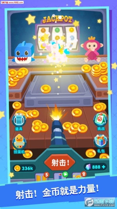 1、融合了射击、推币、扭蛋等经典玩法元素的休闲趣味闯关作品;