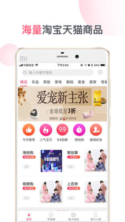你不能不知道某网购平台省钱购物内幕,宅兔通过整合成千上万的电商商家向宅兔用户每天呈现数万的优质产品,品类丰富,实惠,高折扣,适合人群:所有网购用户,当前绝佳省钱app,宅兔出品比属精品,担保售后!