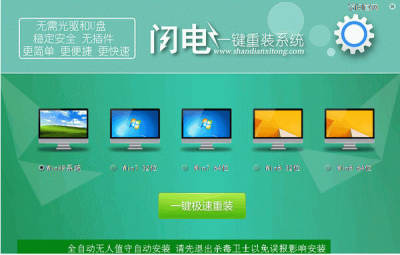 闪电一键重装系统是一款操作极其简单的系统重装软件,傻瓜式一键重装,界面友好,支持一键重装xp/win7/win8系统,重装系统步骤非常简单易用,任何人都可以给自己电脑重装系统。