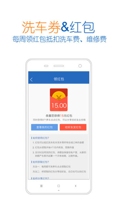 养车点点是一个汽车后市场的移动O2O服务平台,包括了商户版和车主版,应用里提供了如洗车,保养,在线咨询等各类的汽车对接服务。目前养车点点主打一键洗车。用户在移动端选择合适的商户,选择好洗车类型或者相应的洗车券,采用微信或支付宝支付就可完成预定洗车环节。