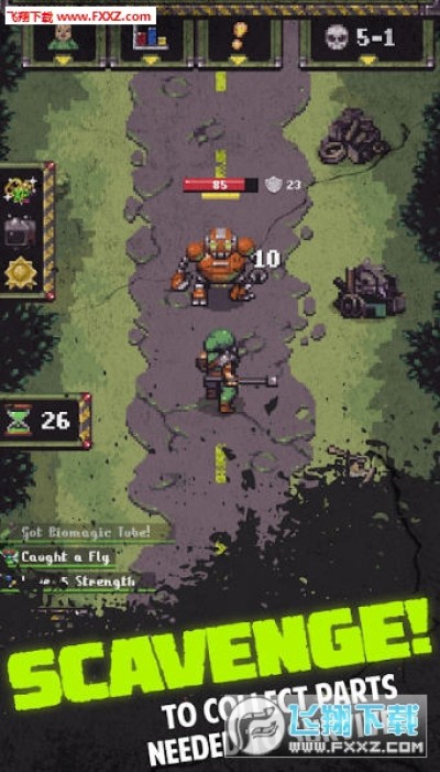 挖掘周围的废料与物资,并重新改造废料,让你的英雄不断升级,返回点击并收集战利品与财富。