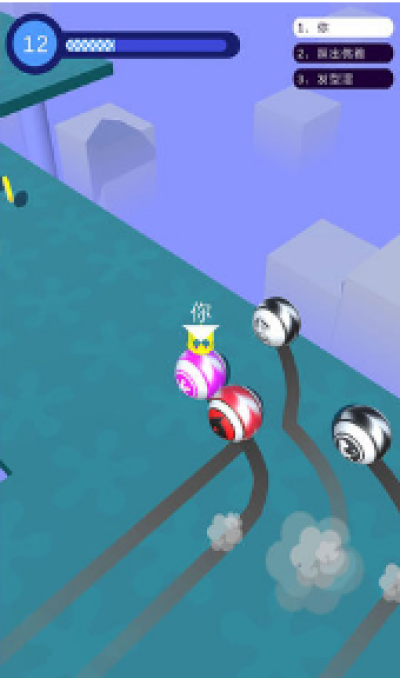 1、清新简约的动漫卡通画风,简单易上手的游戏操作,掌握驾驶技巧,让小球不断加速,夺取最后的冠军荣耀。