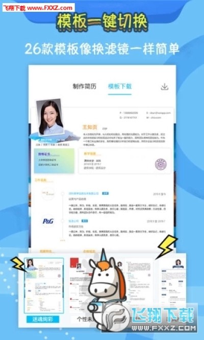 数十款简历模板一键切换像美图秀秀切换滤镜一样简单,自动生成的超美简历排版。