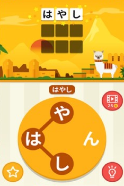 异国单词,挑战多多! 找出隐藏字母,拼出中文单词! 也可以挑战日常英文单词,日常日文单词!