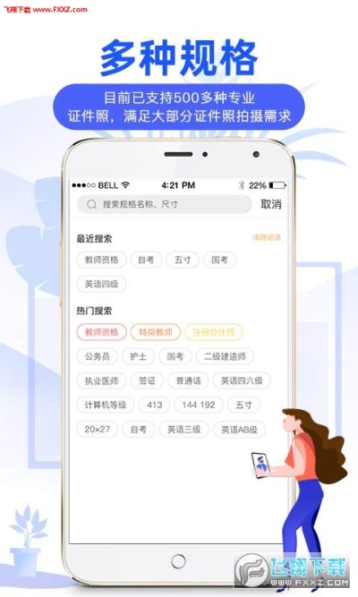 多种规格:目前已支持500多种专业证件照,满足大部分证件照拍摄需求