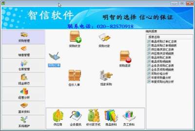 智信进销存管理软件主要分为采购管理,销售管理,仓库管理,财务管理,经营分析,基本资料,系统设置(权限管理)七大部分。